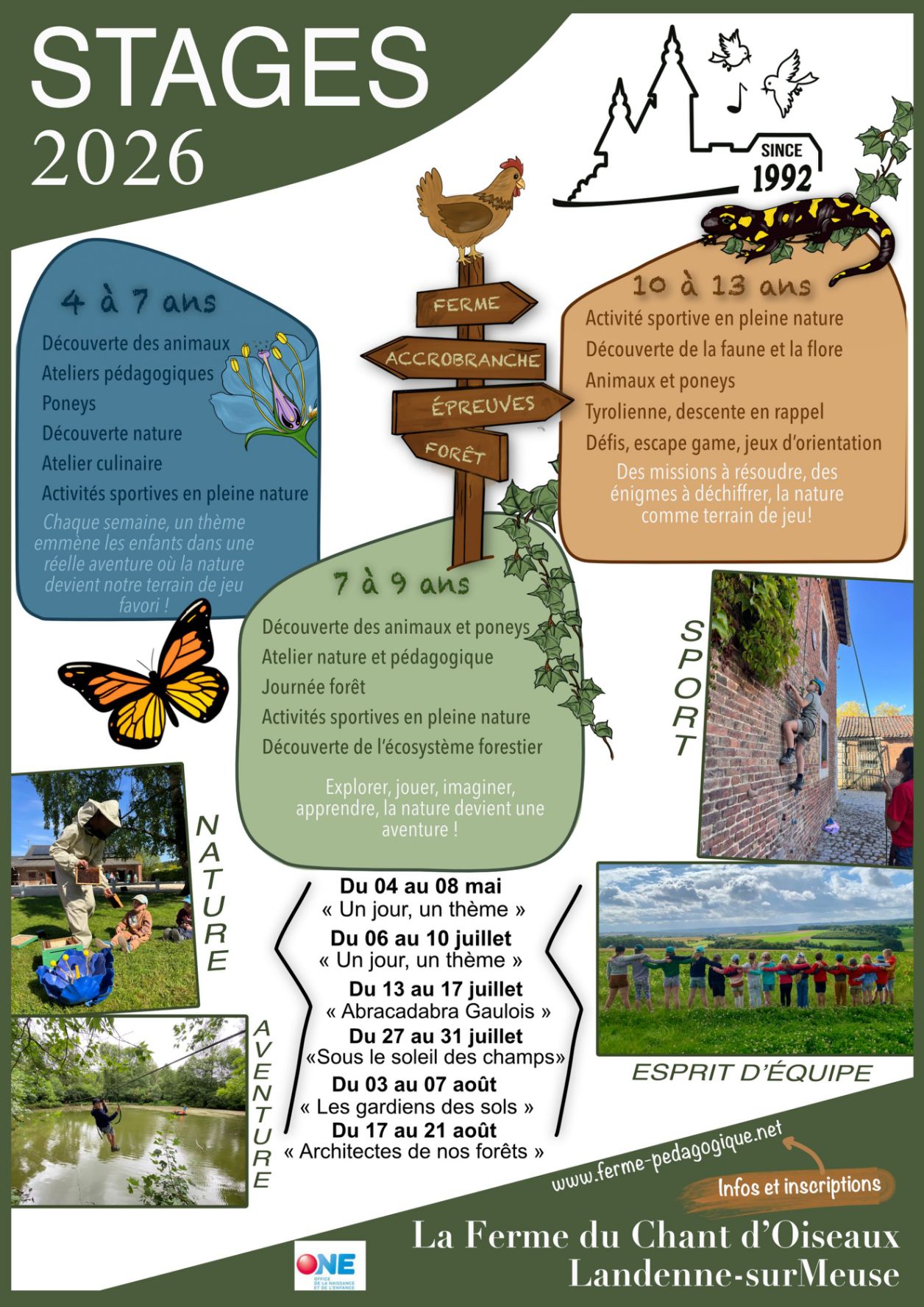 Durant les vacances scolaires, la Ferme du Chant d'Oiseaux te propose de vivre de grandes aventures en pleine nature.